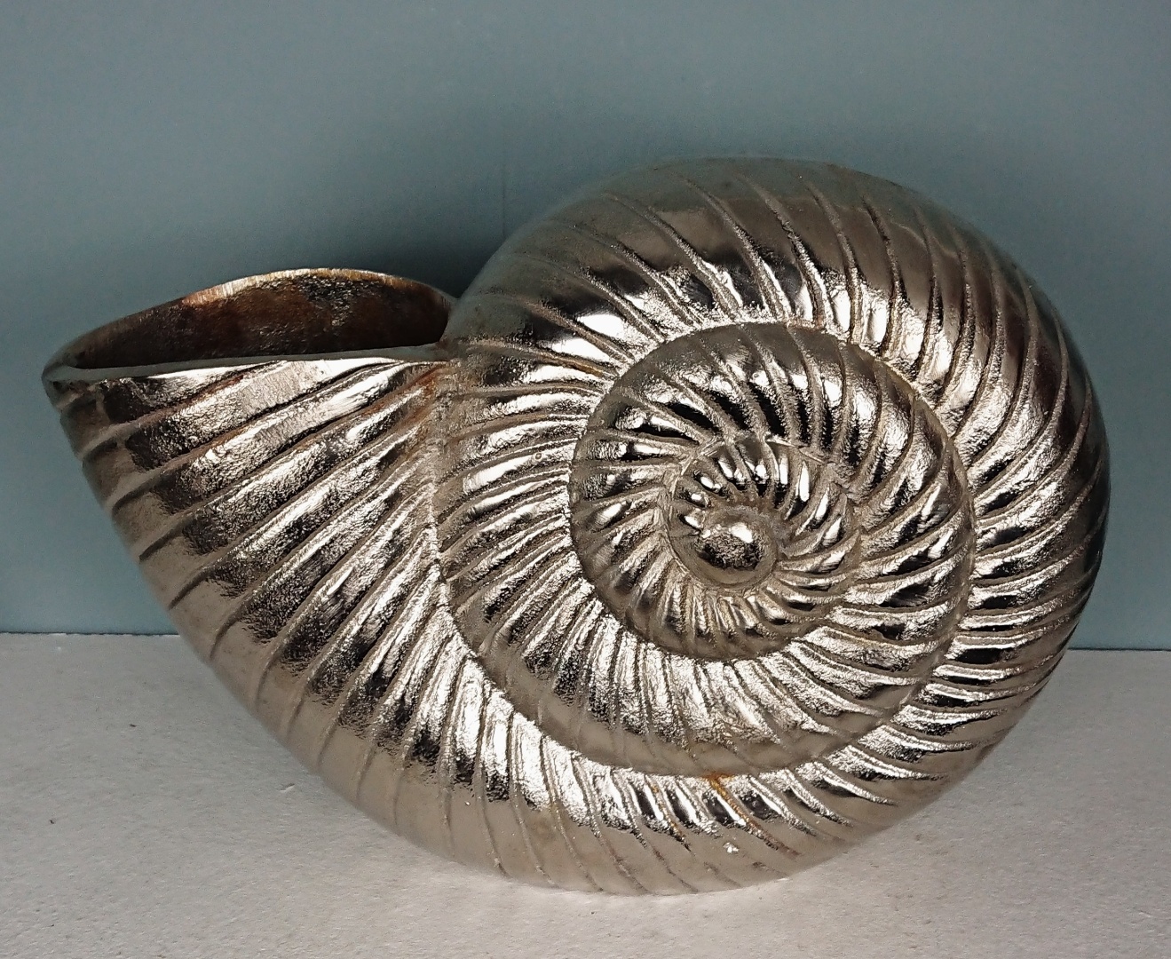Ein besonderes Dekorationsobjekt ist diese tolle Silberne Schnecke die einen “Ammonit” darstellt. Bringen Sie hiermit stilvolle, indirekte Deko in Ihre maritime Wohneinrichtung.